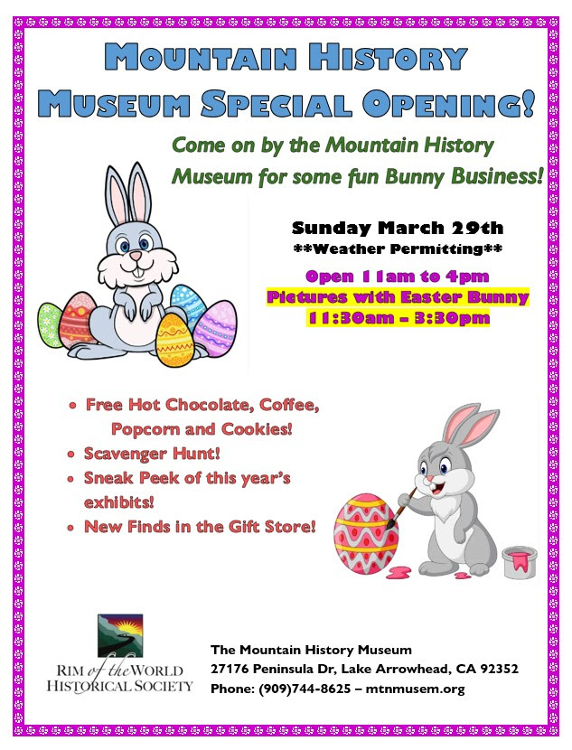 Join us for some Bunny Business at the Mountain History Museum—fun for families, friends, and anyone ready to celebrate the season. **Weather Permitting**