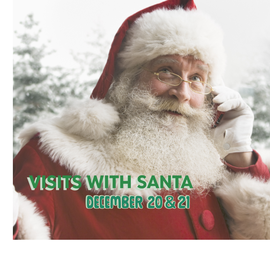 • December 20, Saturday, 11am-4pm with Hot Chocolate, Cider and Cookies and visits with Santa noon-3pm!